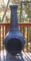 The intricate Rose design makes a great conversation piece while entertaining in front of a roaring fire. This large outdoor chiminea handles a full size fire logs and has an extra large mouth opening for full view of the fire. The Blue Rooster recommends the Charcoal color because of its lasting qualities in a high heat wood burning fireplace application. Gold Accent and Antique Green will darken during firing from pigment changes in high heat colored paints. The hinged safety door provides easy access for adding wood and roasting marshmallows. Clean burning efficient drafting design, a great gift for anyone who enjoys gardening and the perfect centerpiece for entertaining friends.
