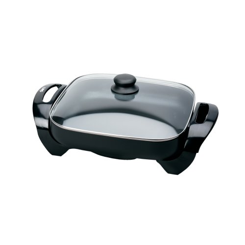 - 1300-watt electric skillet with 12-by-12-inch nonstick cooking surface
